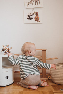 Die Krabbeldecke wird vom Laufwagen abgelöst. Der Wickeltisch und das